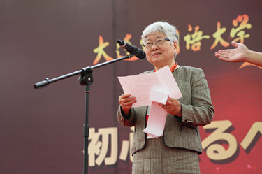 老教师代表王文质老师和专程赶来的大外最早的日语专家代表长谷川由美子分别讲话。五十年来取得的成绩,离不开每一位教师和校友的辛勤付出。老教师们用心血和汗水奠定了发展的基石,为今日大外的壮美篇章奉献出了自己的青春和热情,他们的讲话中,有回顾,有期待,有展望,字字渗透着师生之间随着时间积淀的深厚情谊,句句饱含老教师们对日院的深切期许。