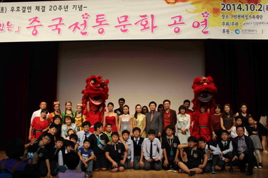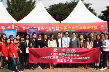 为庆祝孔子学院成立10周年,在国家汉办/孔子学院总部的大力支持下,在韩国仁川市政府、仁川都市公社、仁川国际交流财团的盛情邀请下,我校艺术团一行15人带着孙玉华校长的嘱托,由音乐系南日主任领队赴韩国仁川,参加了由我校仁川大学孔子学院主管的“2014仁川中国旅游文化庆典”和“仁川大连友好城市20周年纪念”活动,为仁川市民们奉献了四场精彩绝伦的中国文化演出,反响强烈。