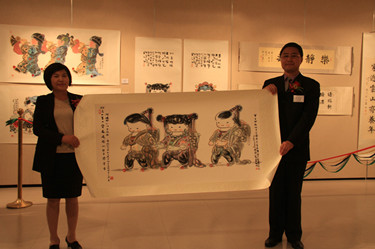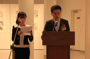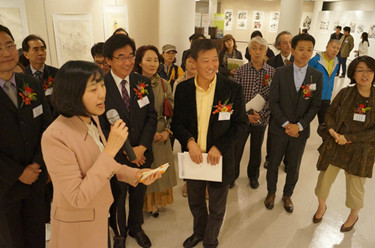 15日下午,“2014中国书画展”开幕式在仁川文化艺术会馆如期进行,开幕式出席嘉宾约150人,包括我校仁川大学孔子学院的院长及各位老师、辽宁中心一行、仁川市政府代表人员、仁川国际交流财团以及仁川市民等社会各界人士。其中我校仁川大学孔子学院中方院长徐智、辽宁省国际经济文化交流中心副秘书长李忠隽、仁川国际交流财团代表理事尹勉相,分别为开幕式进行了致辞,大家纷纷预祝此次中国书画展圆满成功。我校仁川大学孔子学院中方院长徐智表示,孔子学院作为连接中韩两国之间的关系纽带会不断努力,为仁川、大连,乃至韩国中国的文化交流做出更巨大的贡献。此次书画展,辽宁省国际文化交流中心更是特邀中国著名画家张广熙、书法家佡俊岩以及篆刻家周维新三位老师对所展作品进行详细的讲解,之后,辽宁省国际交流中心李忠隽副秘书长代表辽宁中心分别向仁川市政府、仁川国际交流财团赠送了书画作品,希望中韩两国友谊源远流长。最后三方主要领导及代表人员上台共同为书画展进行了剪彩仪式,开幕式在阵阵掌声中结束。