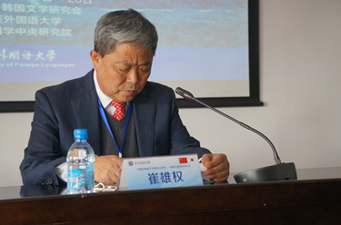 开幕式上,朝鲜—韩国文学研究会金柄珉会长致开幕词。金会长首先对朝鲜-韩国文学研究会之前的研究成果进行了概括和总结,并指出了其中存在的问题和不足,对今后的学术研讨表达了自己的祝愿,并对本次研讨会进行大力支持的韩国学中央研究院及大连外国语大学表示了衷心的感谢。随后,朱公巍副校长为本次研讨会致贺词,对会议的召开表示衷心祝贺,对来自国内各高校的专家和学者表示热烈欢迎,希望通过本次研讨会,扩大我校的学术影响力,也期待我校韩国语学科的教学与科研以本次会议为契机得到全面提升!