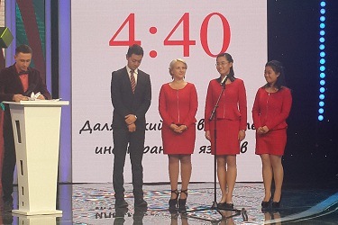 11月7日,“胜者为王——2014首届中央电视台俄语大赛”决赛在北京举行。本次比赛共有北京大学、北京外国语大学、大连外国语大学、黑龙江大学、上海外国语大学和西安外国语大学6所高校的学子进入决赛,参加团体冠军的角逐。我校俄语系教师王楠楠、王野,本科生邵康、洪新新和赵薇,以及汉学院的俄罗斯留学生翟丽娜和尤利娅参加了此次央视俄语大赛,俄语系专家外教亚历山大和教师梁小楠带领“大外战队”征战北京。在激烈的角逐中,大连外国语大学的师生们全面地展示了大外学子应有的风采,并取得了第四名的好成绩。