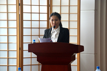 日本语学院2012级学生高乐代表全体获奖学生对日本住友化学株式会社的支持鼓励以及学校的教育培养表达了感谢之情,表示将在以后的学习生活中不断地完善自我,做优秀的日语人才。