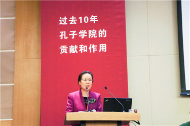 刘延东在致辞中强调,要面向未来,平等合作,共同推动孔子学院事业发展,为建设持久和平、共同繁荣的和谐世界作出新贡献。她指出,孔子学院创办10年来,架起中外语言文化沟通理解的桥梁,形成共建、共有、共管、共享的国际教育交流合作体系,为促进多元文化的交流交融、各国人民的心灵沟通作出了重要贡献。