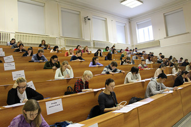 12月6日上午,我校俄罗斯新西伯利亚国立技术大学孔子学院举办了2014年冬季新HSK汉语水平考试。本次HSK汉语水平考试在人数、年龄、级别、地区范围等方面,都比春季考试有了明显的突破。在人数方面,参加本次考试的考生有 261人次,比春季考试增加了104人次;在年龄方面,除了年轻人还有8、9岁的小学生和40、50岁的中老年人;在级别方面,本次考试涵盖笔试和口试的所有级别,是迄今为止参考级别最全的一次考试;在地区范围方面,本次考试的考生除了新西伯利亚本市的汉语学习者,还有巴尔瑙尔、新库兹涅茨克、阿尔泰边疆区等地的汉语爱好者,很多考生不远千里、昼夜兼程赶来参加考试。