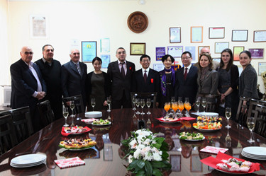 仪式结束后,田二龙大使夫妇在斯拉夫大学校长达尔比尼扬的陪同下参观了学校设施。双方还就中-亚两国高校间教育科研合作等问题举行座谈,相互交换了想法和意见。(刘华荣)