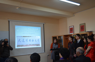 12月26日11时,我校亚美尼亚“布留索夫”埃里温国立语言与社会科学大学孔子学院下设的斯拉夫大学(即俄罗斯-亚美尼亚大学)汉语语言文化中心举行揭牌仪式。中国驻亚美尼亚特命全权大使田二龙和夫人张英梅应邀出席揭牌仪式,使馆政务参赞罗世雄、我校“布留索夫”埃里温国立语言与社会科学大学孔子学院中外方院长、师生代表、斯拉夫大学全体领导和该校汉语专业学生以及中-亚媒体代表参加了此次活动。我校校长孙玉华教授发来了贺信。