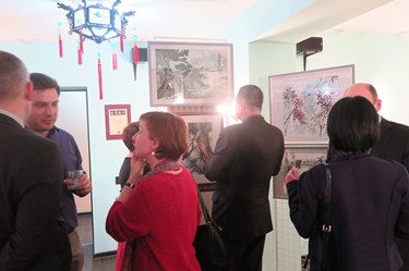 招待会现场还设有中国传统文化体验区。在这里,所有人都可以亲身体验极具中国特色的剪纸、书法、国画、茶艺等传统文化项目。其中,孔子学院学员带来了自己的国画作品,引得诸位来宾纷纷驻足观看。学剪纸,写福字,赏国画,品绿茶,丰富多彩的文化活动赢得了俄罗斯友人们的一致好评,中国春节浓浓的年味儿让参加宴会的每一个人脸上都露出了幸福的笑容。