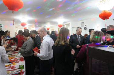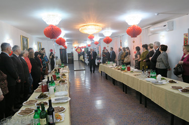 马年辞旧岁,羊年迎新春。2月18日晚,新西伯利亚市“飞龙”中餐馆内张灯结彩,喜气洋洋,由我校新西伯利亚国立技术大学孔子学院举办的新春招待会在此举行。新西伯利亚州领导、市领导、各国驻新西伯利亚使节、中俄友好协会会长、新西伯利亚市各高校及中小学校长、新西伯利亚国立技术大学各级领导、本土教师及学员代表200多人,欢聚一堂,共迎新春佳节。