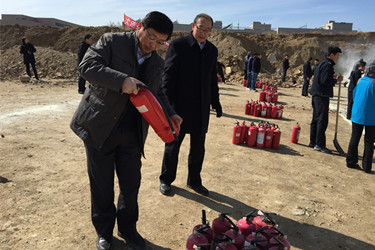 演练现场10个火堆一字排开,火堆前整齐放置着灭火器。演练开始前我校保卫处老师就如何正确使用灭火器进行了讲解和演示,对灭火器现场演练实施过程进行了详细说明并提出安全要求;随后进行现场操作演练。师生员工在火堆前按照灭火器的操作要领认真操作实施灭火,实际体验了正确使用灭火器的方法,得到了实际灭火体验,他们纷纷表示以后遇到火灾不用害怕逃避,会用灭火器进行灭火了。