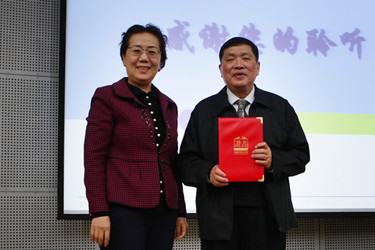 讲堂最后,孙玉华校长为戴炜栋教授颁发了大外“知行讲堂“证书。(黄文龙 李先婷)