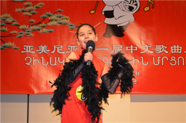 来自契诃夫中学的Arpine用一首充满童趣风情的《小冤家》征服了全场,字正腔圆的唱腔、随歌曲演绎的舞蹈、用心诠释的歌声,赢得现场阵阵掌声,当之无愧赢得了本次比赛中小学组第一名。