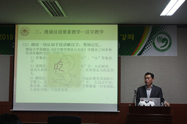 挥自身在汉语教学中的优势。李教授凭借多年的教学经验,理论结合实践,深入浅出,生动形象,为教师们答疑解惑,向他们传授了系统的汉语本体知识和丰富的教学技巧。参加培训的教师们纷纷表示受益匪浅,认为此次培训既从实践出发贴近课堂教学,又从理论高度对教师的教学技能进行了指导,还从其他教师的经验中得到启发,相信对今后的汉语教学大有裨益。