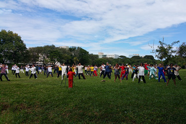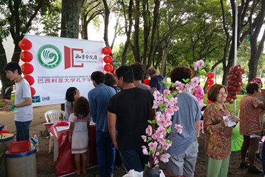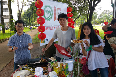 4月25日,我校巴西利亚大学孔子学院在市中心广场举办中国文化推广日活动。参加活动的民众摩肩接踵,十分热闹。当天的活动环节丰富多彩,包括“百人同练太极”、“舌尖上的中国——包饺子”、“夹豆子竞赛”、“美丽的中国汉字”、“古装民族服饰秀”、“楚河汉界——中国象棋”、“神奇的中医体验”、“手工艺品展览”和“舞蹈工坊成果展—荷塘月色”等。