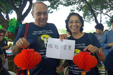早上7点半,巴西利亚太极爱好者们已经早早地聚集在一起,在当地太极协会会长的带领下,大家进行了“百人同练太极”活动。大家的一招一式行进间柔缓而颇具神韵。看到太极在异国他乡生根发芽,在场的每一位中国人都感到无比的自豪和欣慰。“美丽的中国汉字”展台前也很快排起了长长的队伍,大家一笔一划地临摹自己的中国名字,十分兴奋并合影留念。“夹豆子比赛”的参赛选手们正聚精会神地用筷子飞快地从碗中夹起绿豆放入盘中,比比谁在规定的时间内夹的数量最多。“手工艺品展览”中,我校孔子学院老师向参观的民众讲解中国结的制作方法和福袋上“寿”字以及鱼形图案的特殊含义。中医体验环节,大家踊跃尝试,对神奇的中医表现出浓厚的兴趣。