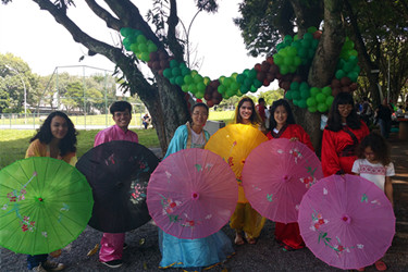 活动现场的每个展台放置了不同颜色的丝带,参加了所有活动环节的人,可以凭借手上的五色丝带领取免费的饺子一份。活动当天,孔子学院舞蹈工坊展示了《荷塘月色》,受到了大家的热烈欢迎,彩色的古典油纸伞,翻扬的裙裾,营造出浪漫优美的氛围。结束后,大家纷纷咨询孔子学院舞蹈工坊的相关信息并当场报名。当地巴西利亚报也报道了这一活动,更大范围地激发了大家学习和体验中国文化的兴趣。(周雪雅)