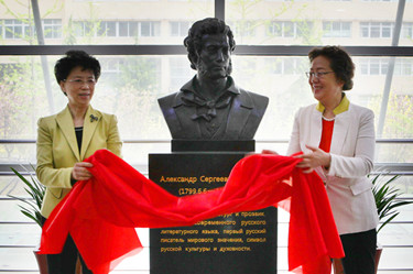 5月7日,为纪念建校50周年及孙玉华校长荣获普希金奖章,由大连市人大教育科学文化委员会赠送的普希金雕像落成仪式在俄语中心隆重举行。市人大常委会副主任沈丽荣,市人大教科文卫委员会主任委员张海冰、市人大教科文卫副主任王德凤、校长孙玉华、副校长朱公巍、副校长刘宏等出席了落成仪式。市科教文卫委员会部分委员及我校上合大学中方校办、俄语系部分师生参加了落成仪式。落成仪式由上合大学中方校办主任任雪梅主持。