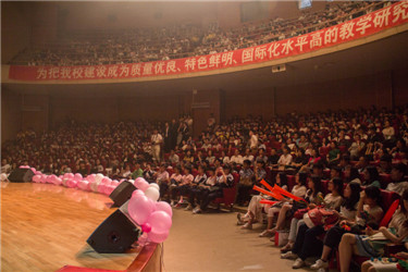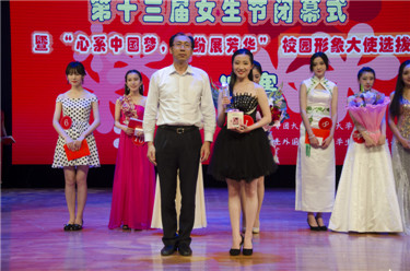 在接下来的第二环节中,从“微访谈” 到“面对面访谈”,从“网络媒体访谈”到“电视直播”,从“街头采访”到“电台节目”,选手们风格多样而精彩纷呈的表现,以及与在场嘉宾的幽默互动使现场轻松愉悦。第三环节的知识竞答比赛以及五子连珠的积分形式可谓惊心动魄。问题涉猎极广。从诗词曲赋到衣食习俗,从天文地理到名胜古迹,三位选手虽竞争激烈却能从容应答。最终,9号选手来自软件学院的陈怡凭借沉稳大方、优雅脱俗的表现获得冠军,1号选手来自德语系的赵枫迪和5号选手来自西葡语系的曹巧妮分别获得亚军和季军,其他参赛选手获得了最佳风采奖。本次比赛以新颖的“皇冠”交接方式为冠军进行了颁奖,随后,所有参赛选手与嘉宾领导合影留念,本次女生节在充满欢乐的氛围中圆满落幕。