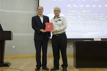 互动环节中,蒋丰教授与现场广大学子就当下中日关系的热点问题展开交流。在谈到培育中国传统文化基因时,蒋丰教授鼓励广大学子在充分继承和发扬中华民族优秀品质的同时,“师夷长技”,提升自我,复兴中华。最后,蒋丰教授提出,每个人能力的增强就是国家能力的增强,有时间议论学霸不如争做学霸,青年强则国家强。讲座结束后,校党委副书记李宝章为蒋丰教授颁发了我校励志讲坛证书并合影留念。