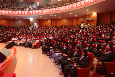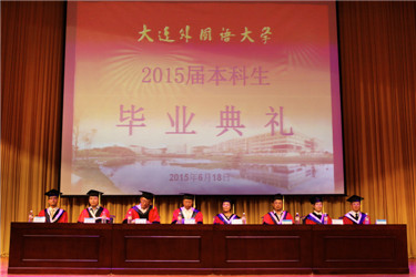 典礼最后校长孙玉华教授致欢送辞。她首先向多年来悉心指导的老师以及关心和帮助同学们成长的每一位至亲好友,致以衷心的感谢和诚挚的问候!随后孙校长饱含深情地与全体毕业生一同回顾了2015届毕业生四年的大学生活和共同经历的点点滴滴。四年间,在校园这片沃土上,同学们勤奋苦读,锐意进取,校园里充满着大家青春活泼的身影。“崇德尚文、兼收并蓄”的校训精神铸就了大外人独有的博大胸怀,而这四年大学生活的青春时光已经深深地镌刻在每一个人的内心深处,融入大家的血液与灵魂,成为永不磨灭的“大外印记”。同时在离别之际,孙校长还代表学校表达了对全体毕业生陪伴学校共同经历学校的跨越式发展,与母校一同奋斗、一路陪伴的感谢。