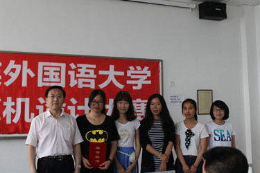 近日由大外计算机教研部和教务处主办的我校首届计算机设计大赛决赛在厚德楼403室举行。本次大赛根据教育部高等学校创新能力提升计划设置,由教务处立项支持。参加此次决赛的是通过初赛盲审入围的6份参赛作品和19名参赛选手,到现场观看决赛的师生坐满了整个大教室,现场气氛热烈,掌声阵阵。我校副校长杨俊峰、宣传统战部部长姚素文、教务处副处长王科、现代教育技术中心副主任李富宇、计算机教研部副主任祁瑞华、国际艺术学院教师孟桂颖、孟峰应邀担任本次大赛的评委。比赛由计算机教研部办公室副主任刘彩虹主持。