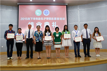 据悉,2015年下半年赴孔子学院志愿者培训班自5月24日报到,至7月3日结束,历时六周。培训课程由志愿精神与汉语教师志愿者、汉语教学能力、中华文化传播能力及赴任指导等方面组成。42天里,174名学员度过了紧张、充实、难忘的学习时光,他们以认真的学习态度和优异的学习成绩圆满地完成了全部培训课程,展现了良好的专业素质和文化艺术素质。