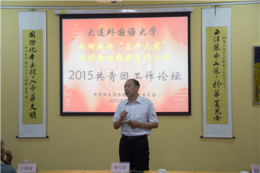为总结本学期共青团工作,发现共青团工作薄弱环节,改善共青团工作不足,进一步提高我校共青团工作水平,7月7日上午9时,我校团委主办的以“如何践行‘三严三实’,做好新时期共青团工作”为主题的系列活动之共青团工作论坛在中德文化比较中心举行。校党委副书记李宝章、党委组织部部长王伟辰、学生工作处处长赵勇、校团委书记张皎,全体团干部、各院系分团委书记参加了本次论坛。论坛由校团委李虹瑾主持。