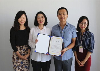 9月7日,为表彰我校仁川大学孔子学院中方院长徐智为中韩两国文化交流等方面所做的贡献,仁川市国际交流财团李善婀课长作为代表为徐智院长颁发了感谢状,向其对增进中韩两国友谊所做出的努力表示感谢。