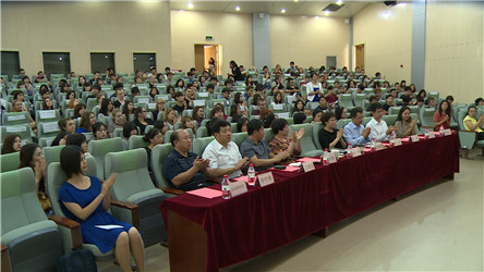 9月11日下午,我校2015-2016学年第一学期国际学生开学典礼及表彰会在图书馆报告厅举行。典礼在展示留学生丰富多彩的视频中拉开帷幕。副校长刘宏教授、研究生处处长姜凤春教授、国际文化交流中心总经理李中林、汉学院全体领导、老师及300名新入学的国际学生参加了典礼。典礼由汉学院院长李春姬教授主持。
