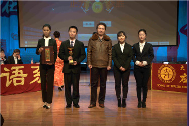 慷慨陈词抒己论,唇枪舌战决奕时。12月9日14时30分,由共青团大连外国语大学委员会主办,校学生会学习部承办的大连外国语大学“在一二九的旗帜下”校园辩论赛总决赛在我校启航楼礼堂圆满举办。校党委副书记李宝章莅临比赛现场,校工会主席于东洋、宣传统战部部长姚素文、学生工作处处长赵勇、就业指导处处长纪纯晶、研究生处处长姜凤春、教务处副处长王科、思想政治理论教研部副主任王丹、文化传播学院刘晓然教授、文化传播学院文学教研室孙明材主任担任此次比赛的评委,此外,各院系书记及辅导员老师也应邀出席。