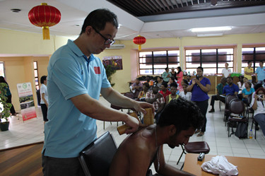 贾磊以国外友人熟知的“宝芝林”和“黄飞鸿”为例,对中医理论和针灸的历史进行深入浅出,图文并茂的讲解,在短时间内使圭亚那民众对中医有了一个全新的感性认识,拉近了其与中医的距离。随后,贾磊医生为在场听众安排了体验活动,不仅教授了一些简单易行的中国传统保健技巧,更邀请感兴趣的师生亲身体验圭亚那人最为好奇的中医治疗方法。在场听众反响强烈,纷纷上台表述病情,接受针灸、推拿和拔罐等治疗,并不断用中文惊呼“神奇!真棒!好医生!”同时,不断有来宾和贾磊医生交流,询问在哪里可以了解更多的中医药知识,得到更多的中医治疗。本次讲座井然有序,生动活泼地展示了立体式的中医药文化和中国语言,使当地民众亲身体验到绿色环保的养生快乐和中医“一见知病,出手即效”的医学成就,并对中国医生所展示的“医者仁心,医乃仁术”的职业道德表示敬佩。