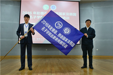 最后,校党委书记刘玺明向学员代表授旗,全体学员进行了汉语教师志愿者宣誓,表达了为汉语国际推广事业贡献力量的决心。据悉,本次参加培训的174位学员是来自北京大学、北京语言大学、北京外国语大学、中国人民大学等55所高校的本科毕业生、在读硕士研究生。在完成为期6周的培训任务后,他们将前往俄罗斯、西班牙、韩国、亚美尼亚等22个国家的57所孔子学院/课堂赴任。