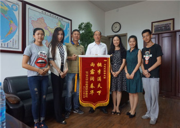 在暑期社会实践中,我校晨星公益支教团队秉承我校优良传统,积极奉献,赢得一致好评。为了表示感谢,近日,旅顺时空义工队雷达队长代表支教学校前来赠送锦旗。党委副书记李宝章在校团委书记李虹瑾的陪同下,亲自接见了雷队长,代表学校党委接受了题有“桃李满天下,雨露润春华”的锦旗,双方进行了亲切的交谈并合影留念。