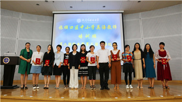 典礼上,姜风春副校长首先宣读了旅顺口区中小学英语教师第二期17名优秀学员名单,并与培训相关领导为其颁奖。随后优秀学员代表白颖、李亚兰、鲁婷、史慧颜四位老师分别做了汇报演讲。他们在发言中感谢此次培训对其教学能力和专业技能的提升起到积极的作用并分享个人学习过程的感受和体会。英语学院优秀师资的教学理念、方法以及老师们敬业的教学态度给他们留下了深刻印象。