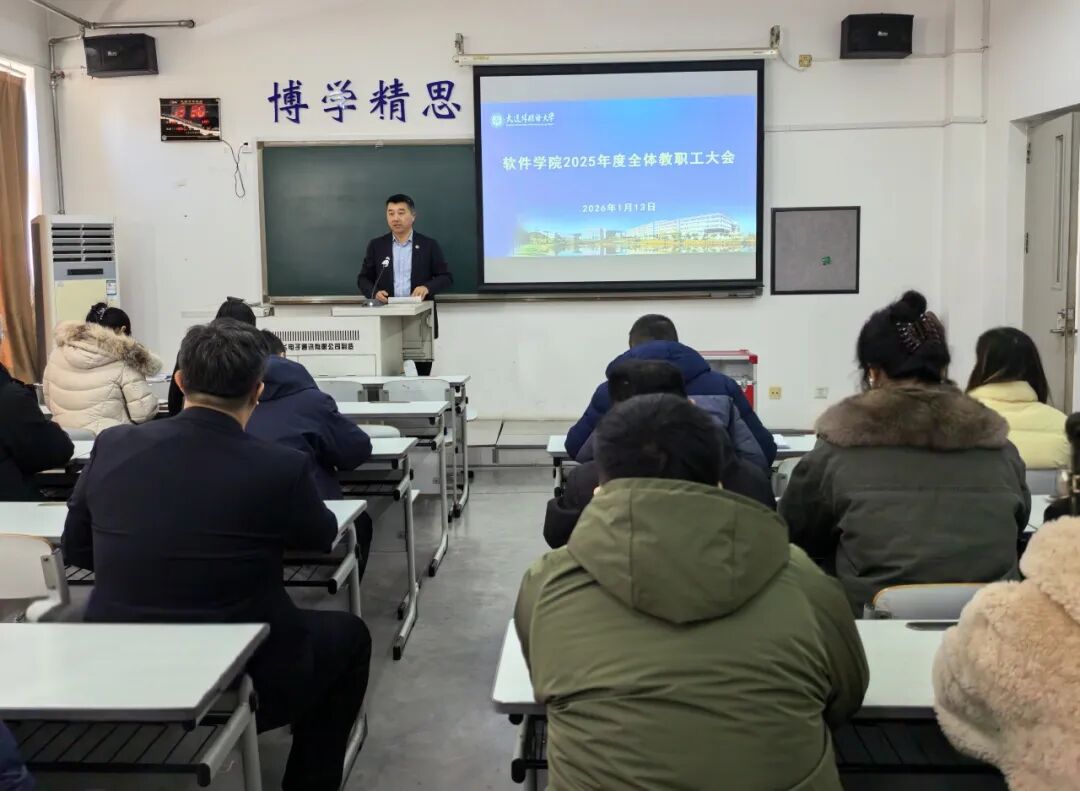 1月13日下午,软件学院(大数据产业学院)在励行楼613召开了2025年度全体教职工大会暨教育教学工作会议。会议由院长王科主持,学院领导班子成员及全体教职工参会。会上,学院党委书记邹黎明代表班子作2025年度学院工作总结。总结指出,过去一年学院在学校党委和行政的坚强领导下,以习近平新时代中国特色社会主义思想为指导,落实立德树人根本任务,在党建、学生工作、教学科研等多领域取得显著成效。2026年,学院将继续紧紧围...