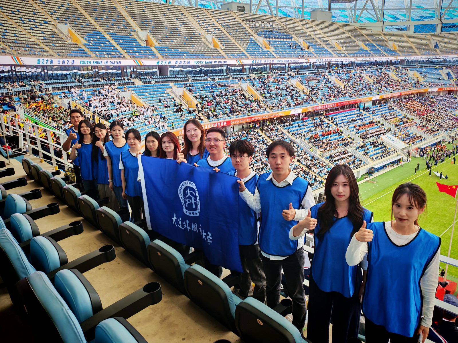 9月,国际大学生体育联合会(FISU)足球世界杯在大连举办,创新创业学院组织60名师生志愿者团队,全程参与赛事志愿服务,为开闭幕式及重点赛事的顺利运行提供服务保障,助力赛事高效有序运行。