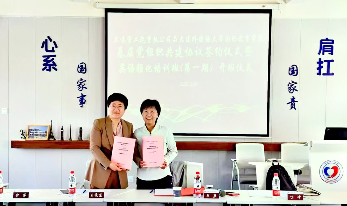 为深入学习贯彻党的二十大精神,创新基层党建工作形式,推动校企资源共享、优势互补,5月24日上午,大连华锐重工起重机有限公司技术党支部与大连外国语大学国际教育学院直属党支部在大外国际教育学院A406室举行基层党组织共建协议签约仪式暨英语强化培训班(第一期)开班仪式。双方党组织负责人、党员代表及培训班师生共10余人参加活动。